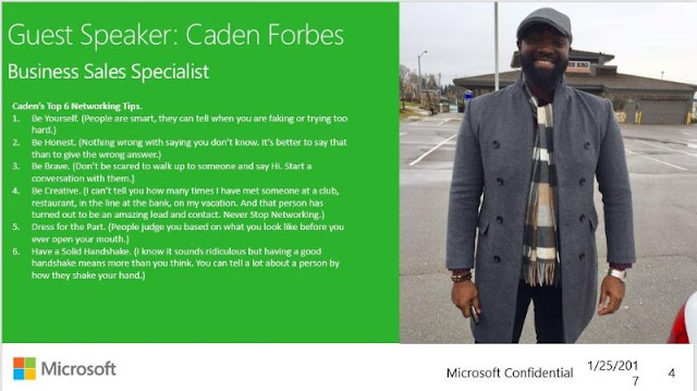 Caden Forbes is Business Sales Specialist with Microsoft in Toronto. Below are some great networking tips.